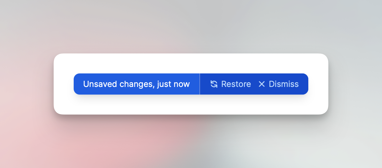 Recovery: When you return to the editor—on the same browser and device—you’ll be prompted to either restore your unsaved changes or dismiss them and start fresh (or with the latest stored database version).